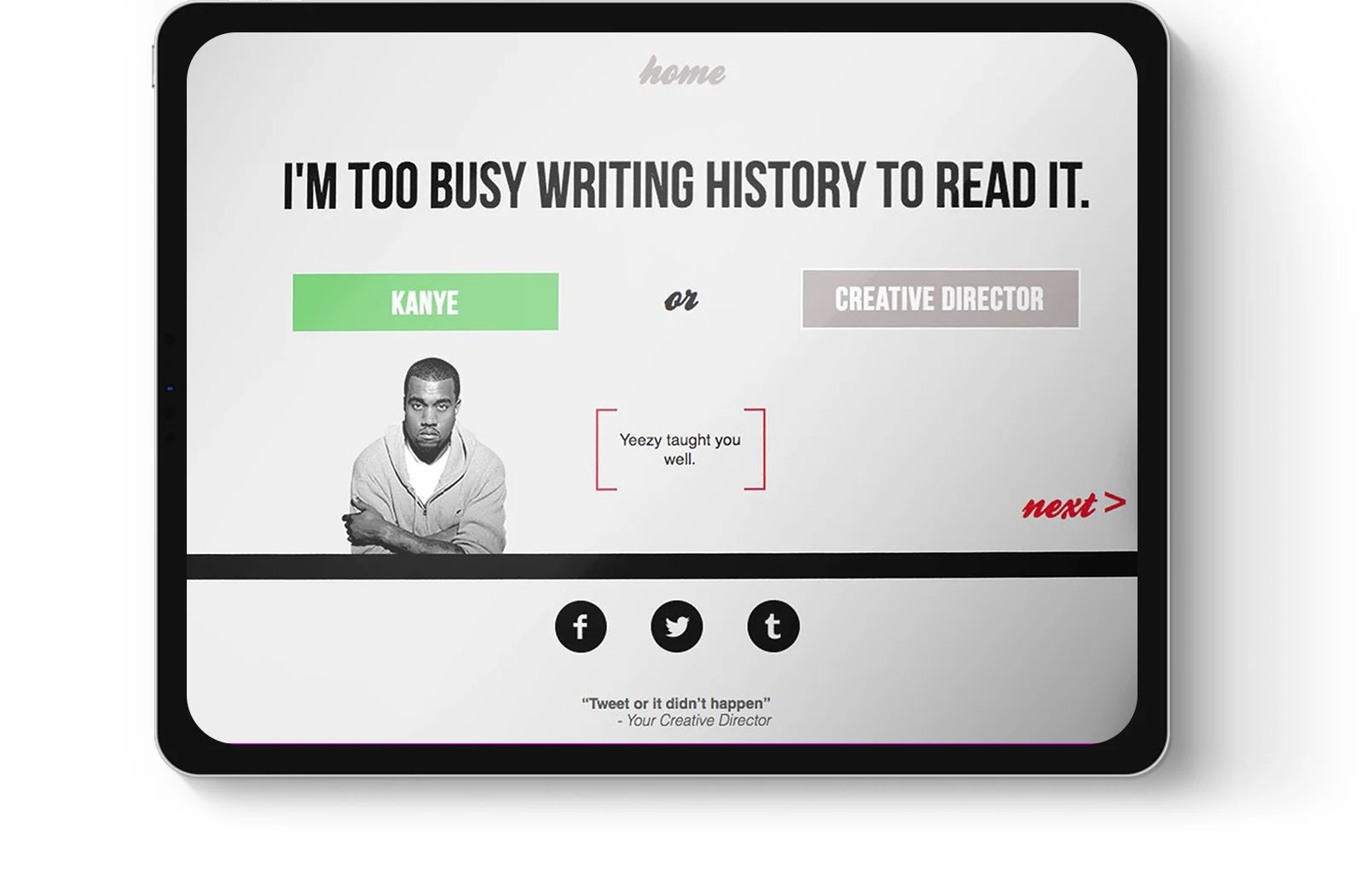It all started when Tyler and I, big fans of both Kanye and Creative Directors, realized that we often hear them say curiously similar things. We made a little game that we played, first just the two of us, then with the rest of our friends in the creative department. Then we thought, why not share this with the world? And so we made a site.